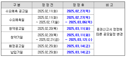 증권신고서 정정으로 인해 연기되면서, 환불일이 4일에서 2일로 변경되었습니다..