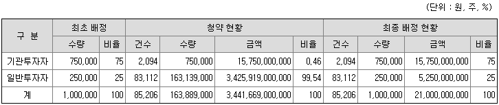 - 비례청약 배정 : 0.00077주 (1,305 대 1, 주당증거금 1,370만원)
