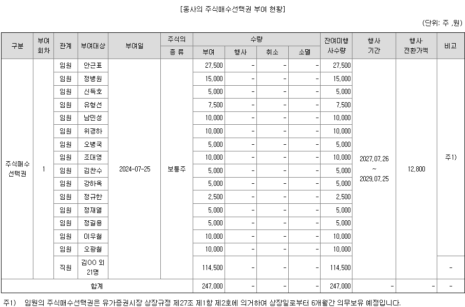 주식매수선택권이 꽤 되는데, 전환가능일이 2027.7.26일로 공모주 투자에는 영향이 없을 듯 합니다.