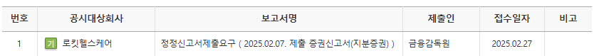3/14(금) 청약예정이었던 로킷헬스케어는 증권신고서 수정으로 일정이 연기됩니다.