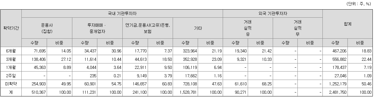 확약물량 비중이 올해 아스테라시스 (65%)를 제외하고 가장 높네요.