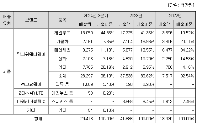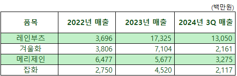 - 매출 비중 : 레인부츠 → 겨울화 → 메리제인 → 잡화 순