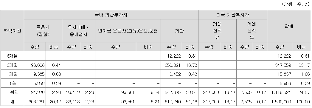- 확정 유통물량 162 만주 (11%, 259 억)