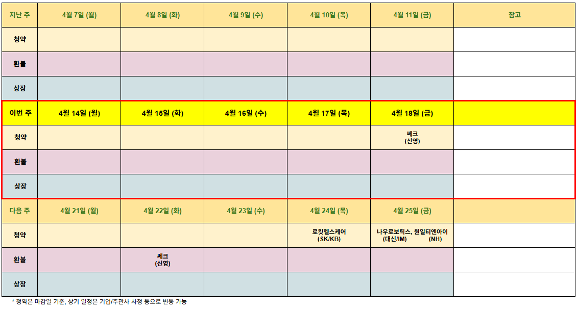 4월 14일 주 공모주 일정