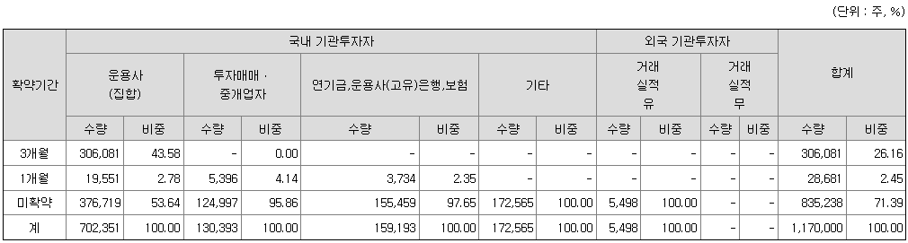 기관투자자 의무보유확약기간별 배정현황