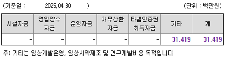 - 자금의 사용 목적이 기타로만 되어 있어서, 세부 내역 확인해 봤습니다