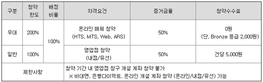 - 청약한도 및 수수료