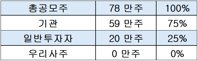 전체 공모주 78만주를 기관 75%, 일반 25%로 배정했습니다