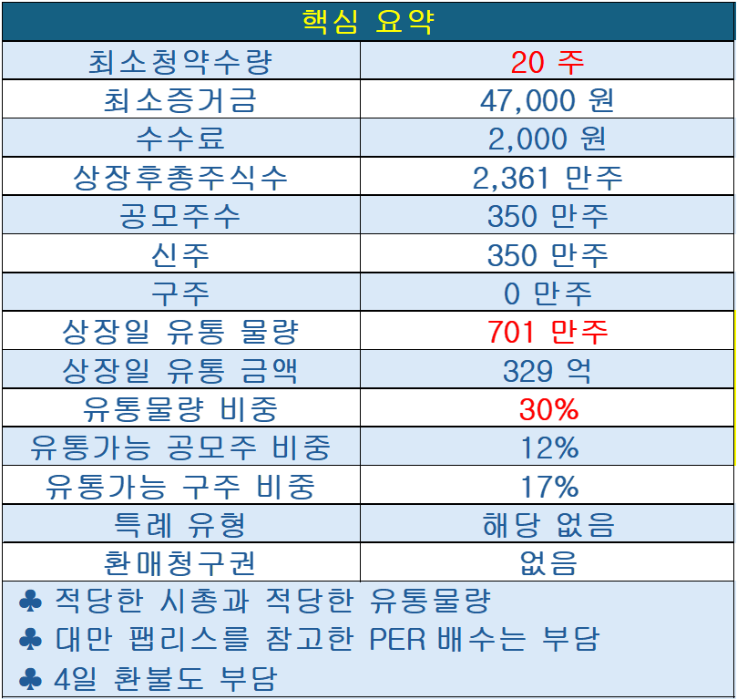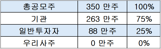 전체 공모주 350만주를 기관 75%, 일반 25%로 배정했습니다