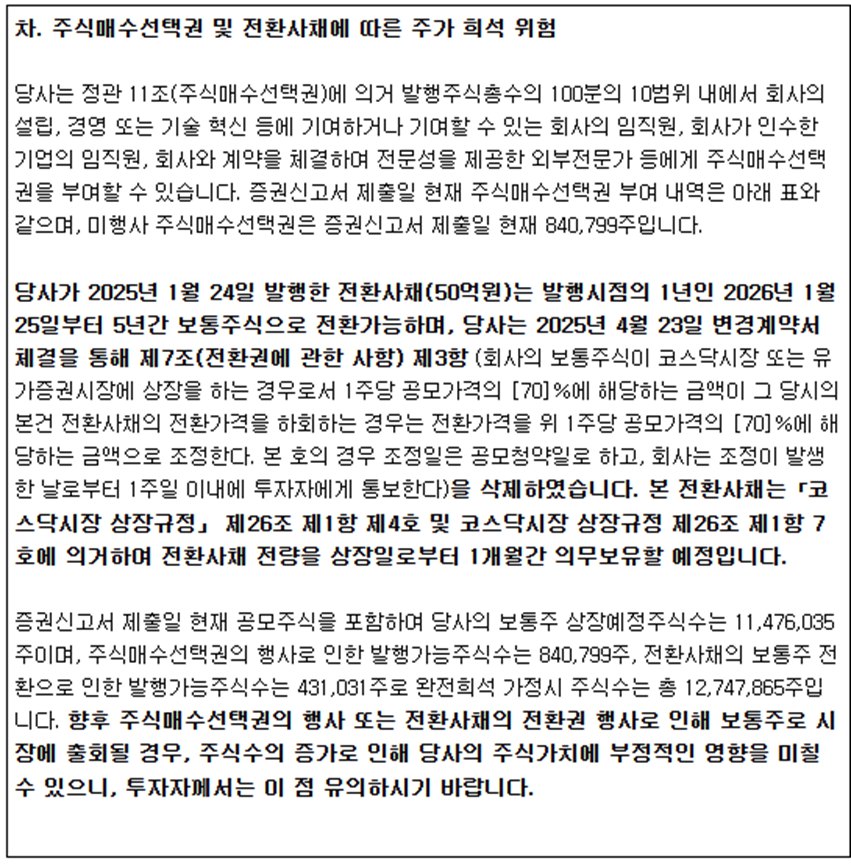 - 희석 요인 (인수인의 투자내역, 주식매수선택권, 신주인수권 등)