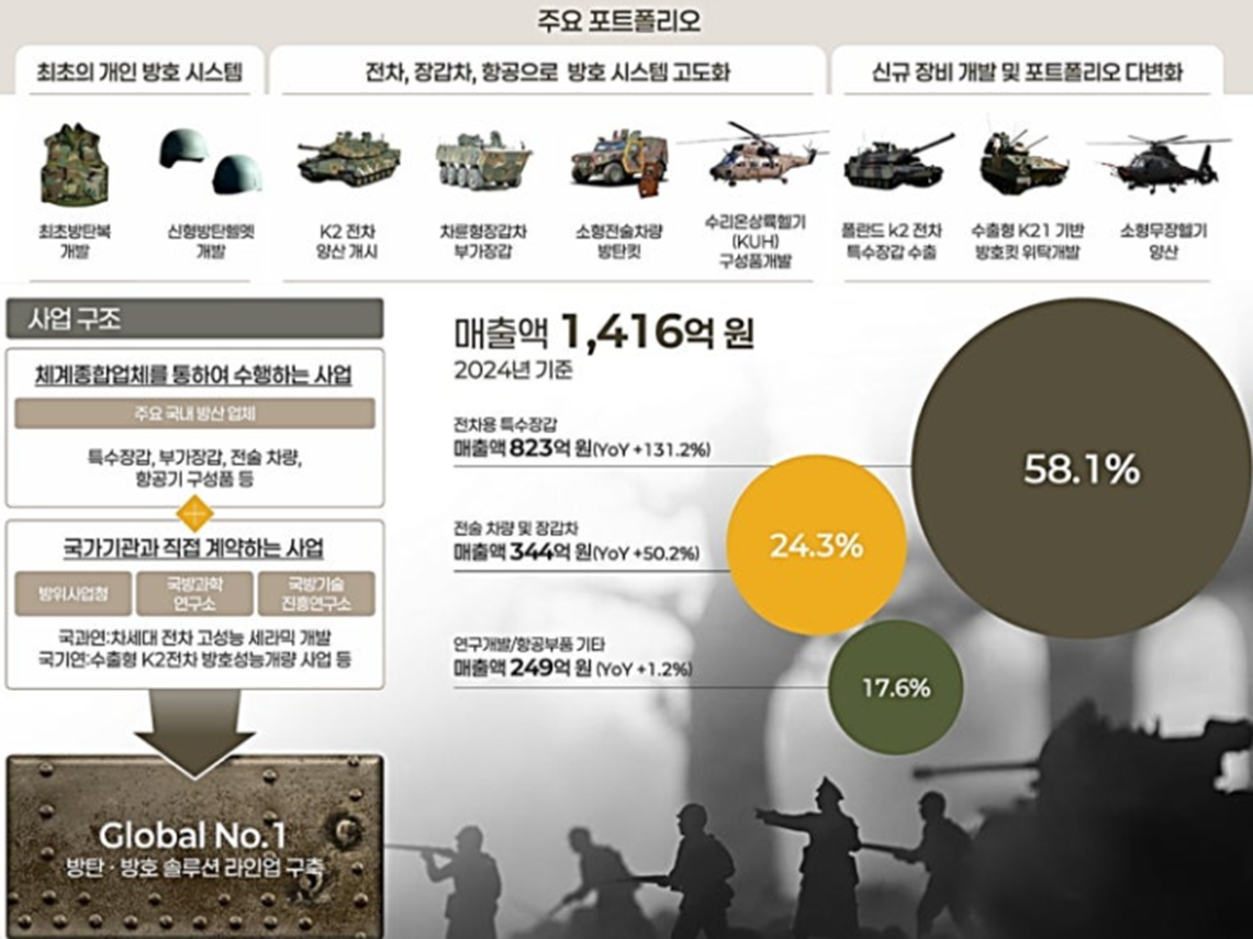 - 방위산업 분야 전문 기업으로 고기능성 세라믹 방탄소재 개발 및 제조