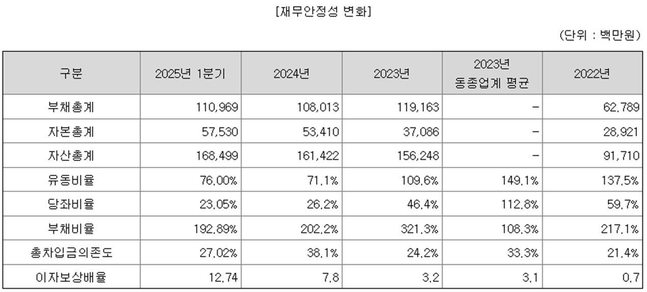 - 재무 안정성은 2024년 투자 설비 확충으로 악화되나 코스닥 상장 후 개선 기대