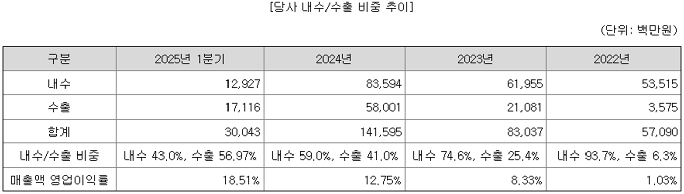 - 상위 3개 매출처 비중 2024년 85.29%, 2025년 1분기 88.72%로 높음