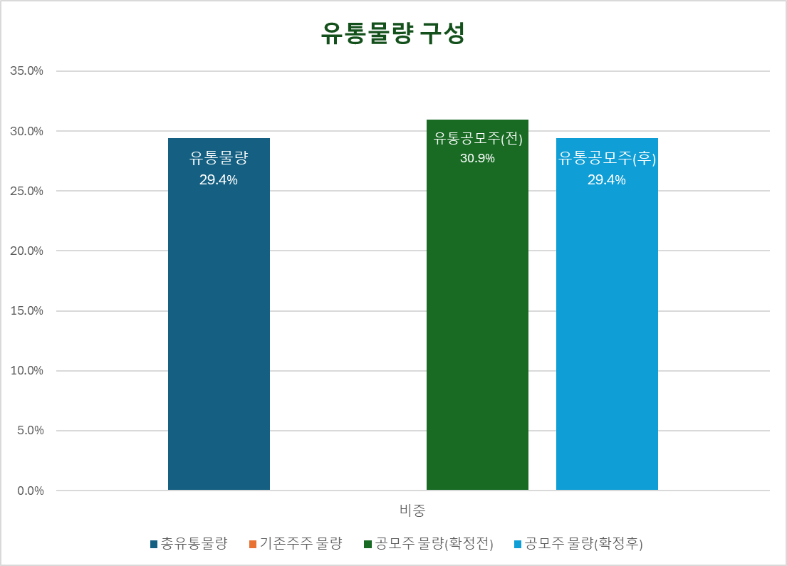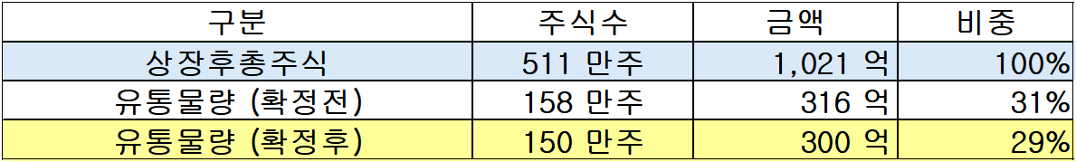 유통물량 약 29%는 공모주로만 구성됩니다 (기존 주주 물량 없음)
