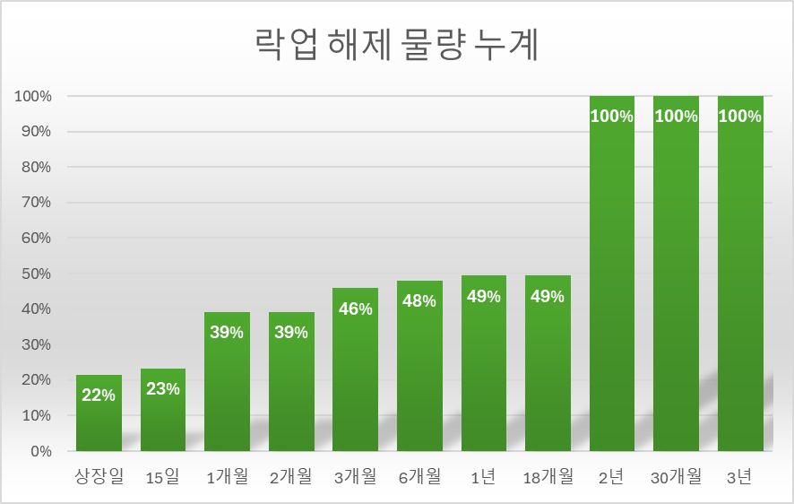 1개월 후엔 약11% 물량이 추가로 풀립니다