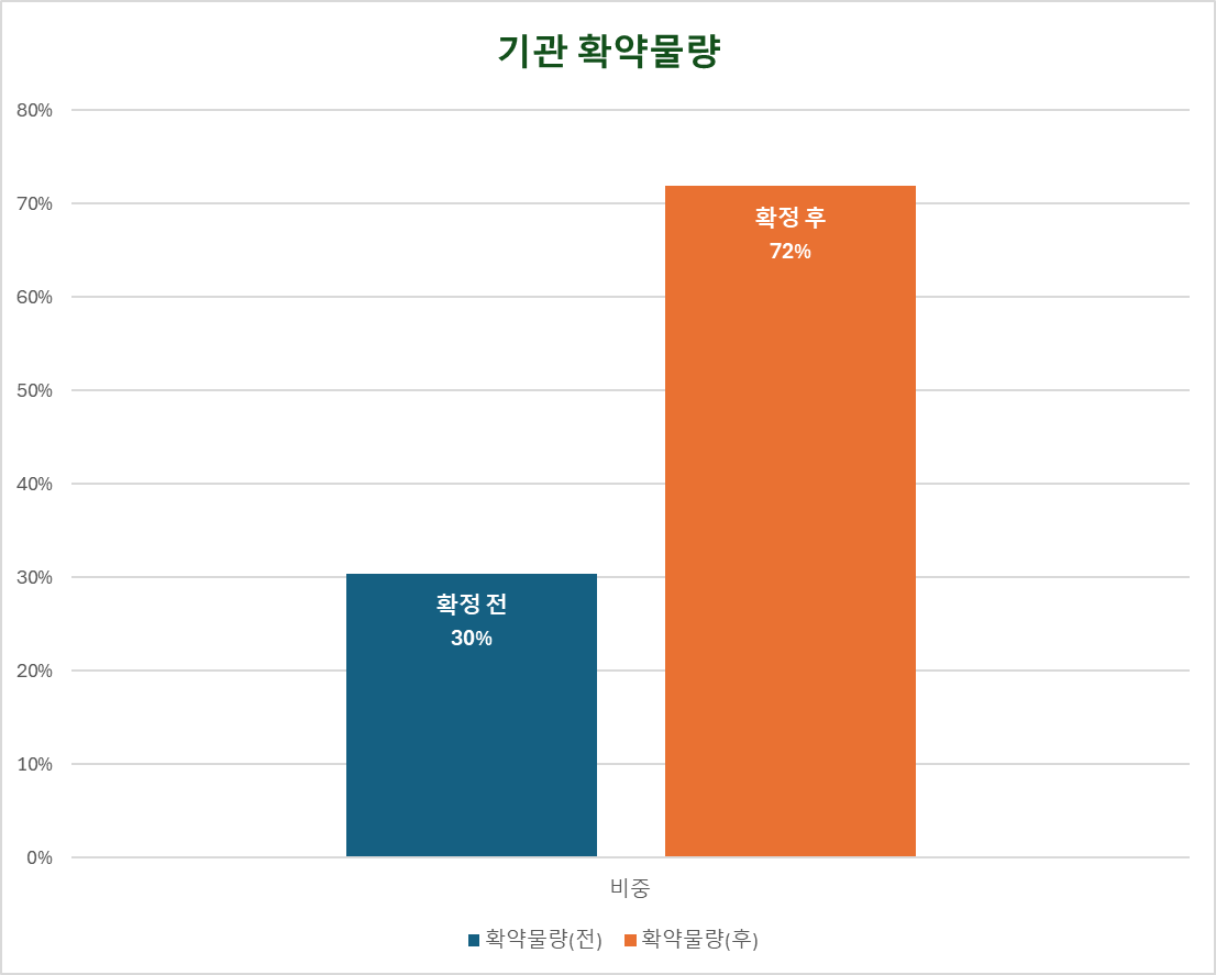 기관물량기준 확약 비중은 수요예측 시 30%에서 최종 72%로 변경되었습니다