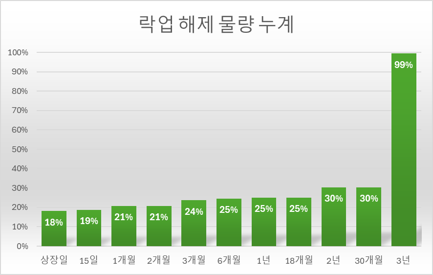 1개월 이내에 약3% 물량이 추가로 풀리지만, 부담없는 비중입니다.