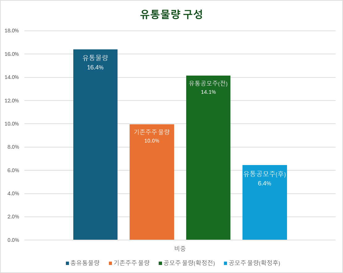 유통물량 약 16%는 기존주주 10.0%와 공모주주 6.4%로 구성됩니다