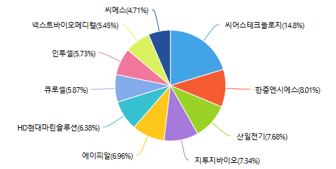 산일전기는 최근 전력기기/원전의 하락에도 불구하고 비중이 유지되고 있는 모습을 볼 수 있습니다.
