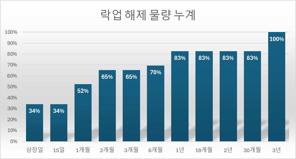 | 락업 해제 일정 | 물량 | 누계 | ||