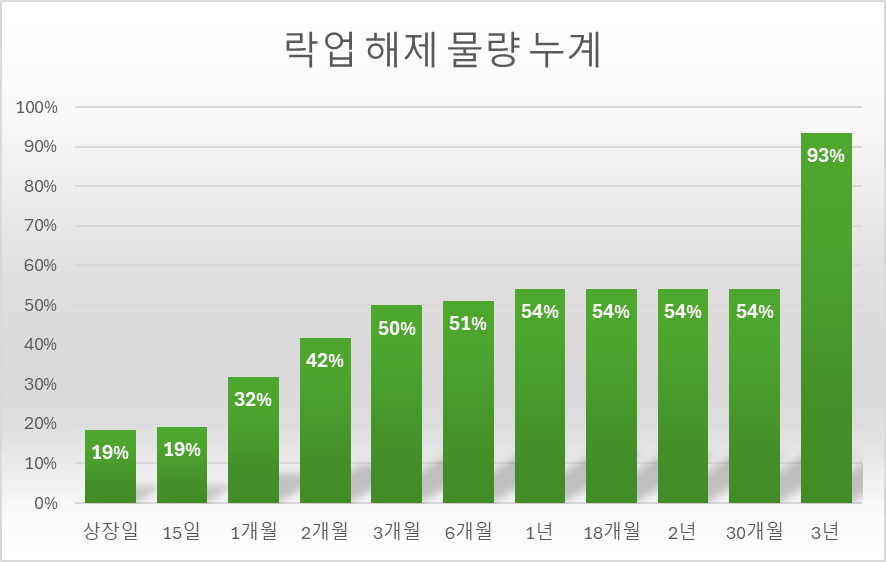 1개월 후엔 약13% 물량이 추가로 풀립니다
