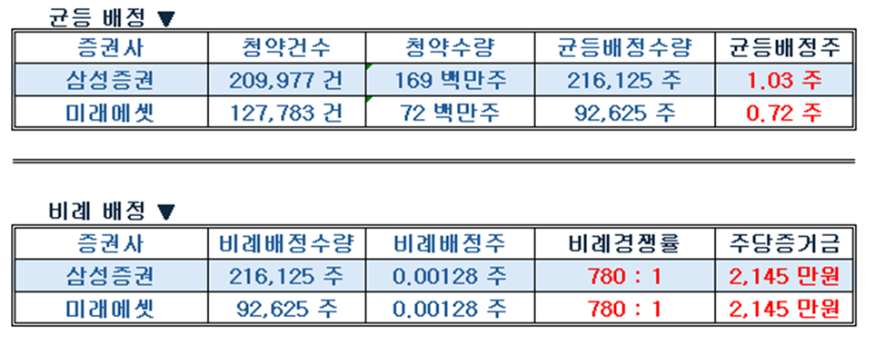 | 대표 주관사 | 삼성,미래에셋 | |||