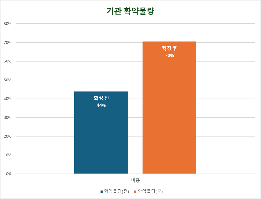 기관물량기준 확약 비중은 수요예측 시 44%에서 최종 70%로 변경되었습니다