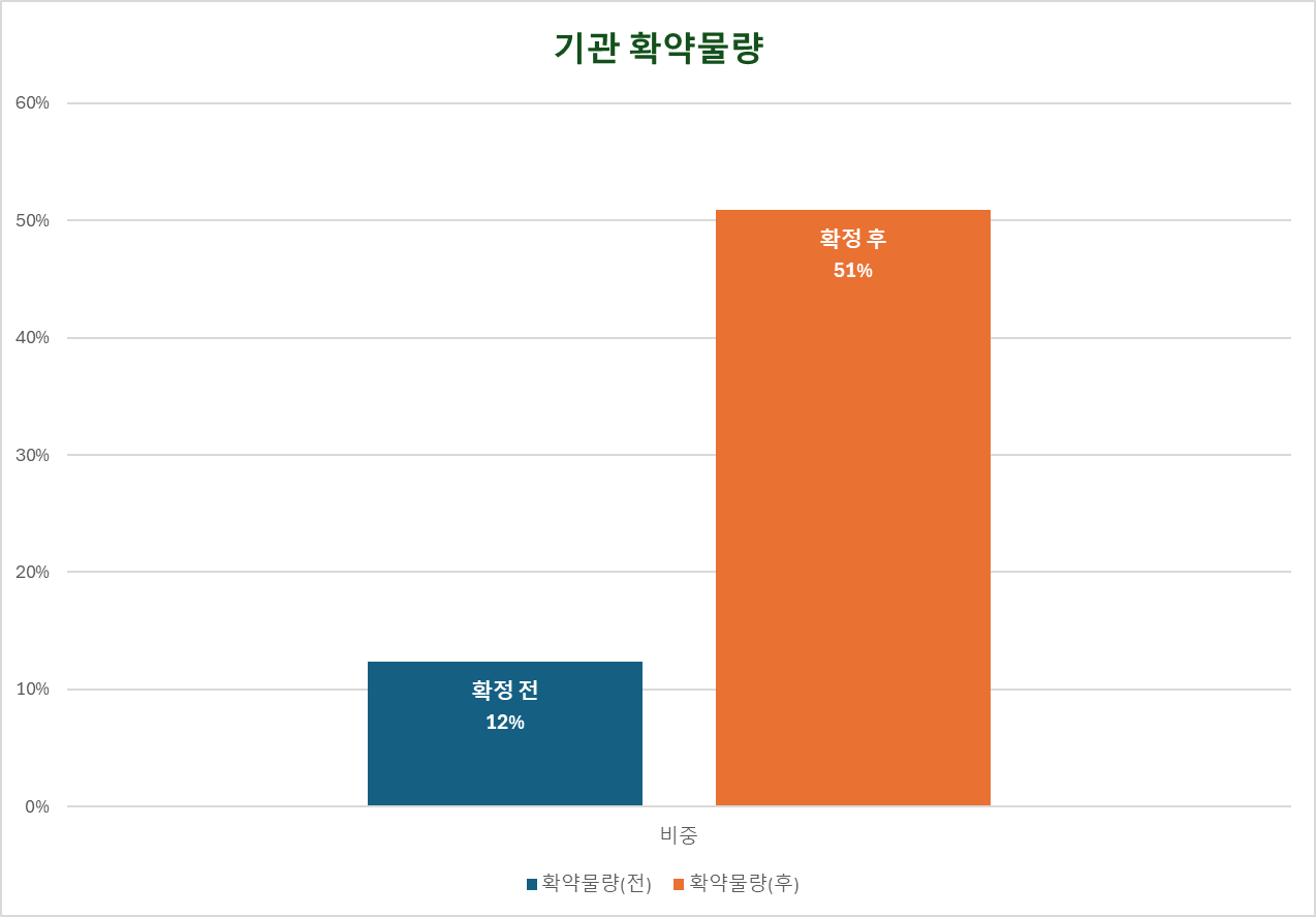 기관물량기준 확약 비중은 수요예측 시 12%에서 최종 51%로 변경되었습니다