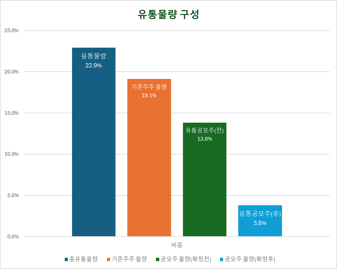 유통물량 약 23%는 기존주주 19.1%와 공모주주 3.8%로 구성됩니다