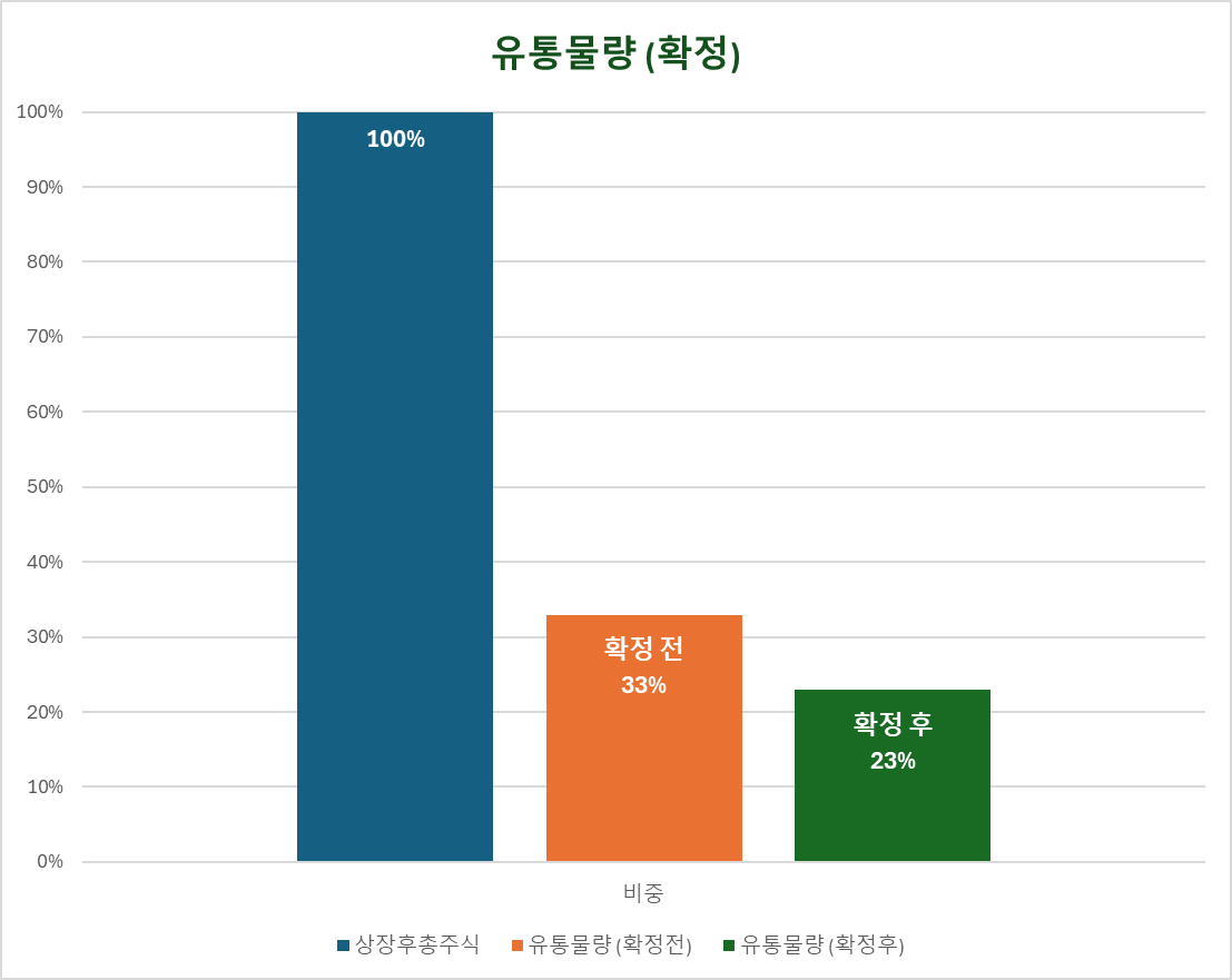 | 유통물량 (확정후) | 223 만주 | 481 억 | 23% | |