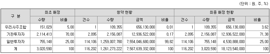 - 비례청약 배정 : 0.0003주 (3,334 대 1)