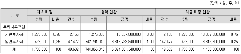 - 비례청약 배정 : 0.00028주 (3,495 대 1, 주당증거금 1,486만원)