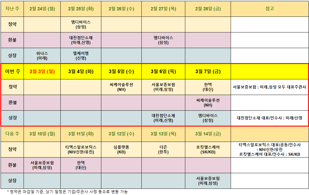 * 3월 3일 주 공모주