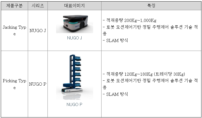 NUGO 시리즈 (무인이동 물류로봇 (AMR) – 공정 간 이송, 창고 물류 적용)
