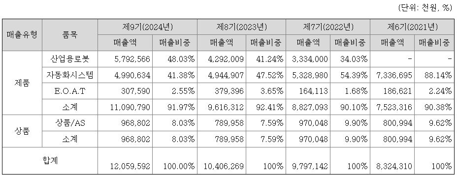 - 주요 매출 비중 : 반도체 제조 장비: 66.34%, 산업용 로봇 및 진공: 20.91%, 디스플레이 장비: 9.01% 등