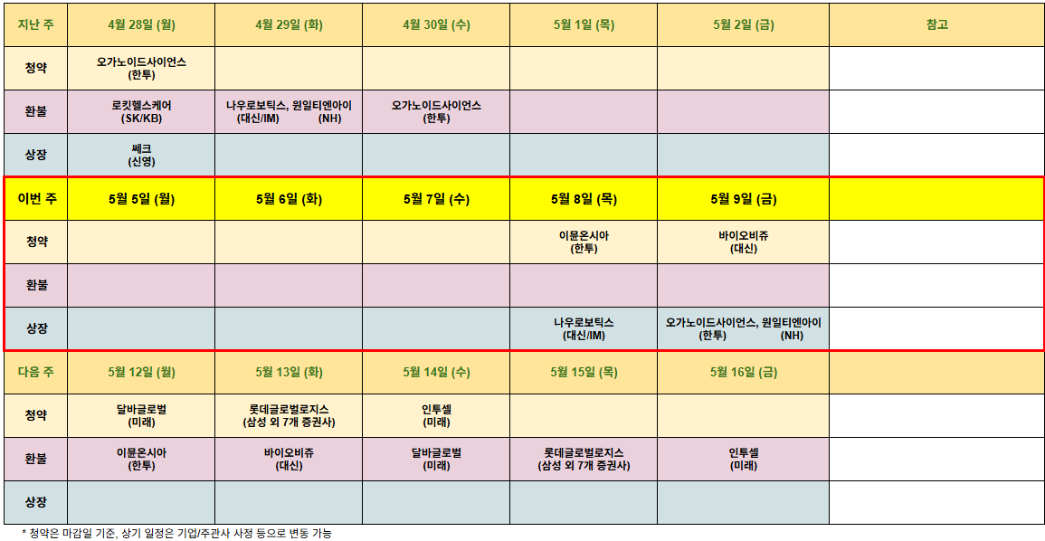 5월 5일 주 공모주 일정
